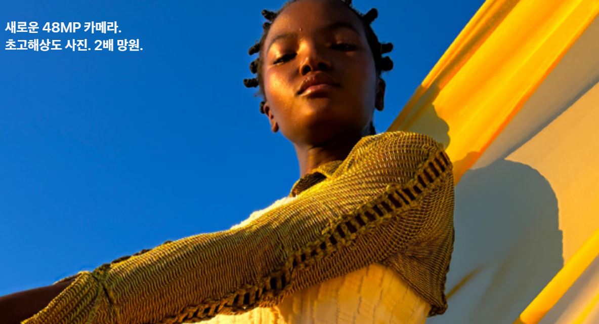 카메라의 경우 48MP의 메인 카메라와 초 광각 카메라 두 가지 종류가 탑재됩니다. 또한 메인 카메라를 활용한 2배 망원 옵션이 활성화 되어 있어 멀리 떨어져 있는 대상의 디테일을 담아 낼 수 있습니다.프레임 속 인물을 자동인식하여 인물모드 전환 없이 사진 촬영이 가능합니다. 셔터를 누를때 생기는 딜레이 현성이 개선되었으며 야간 모드나 빛이 약한 촬영시에도 디테일한 모습까지 촬영이 가능합니다.